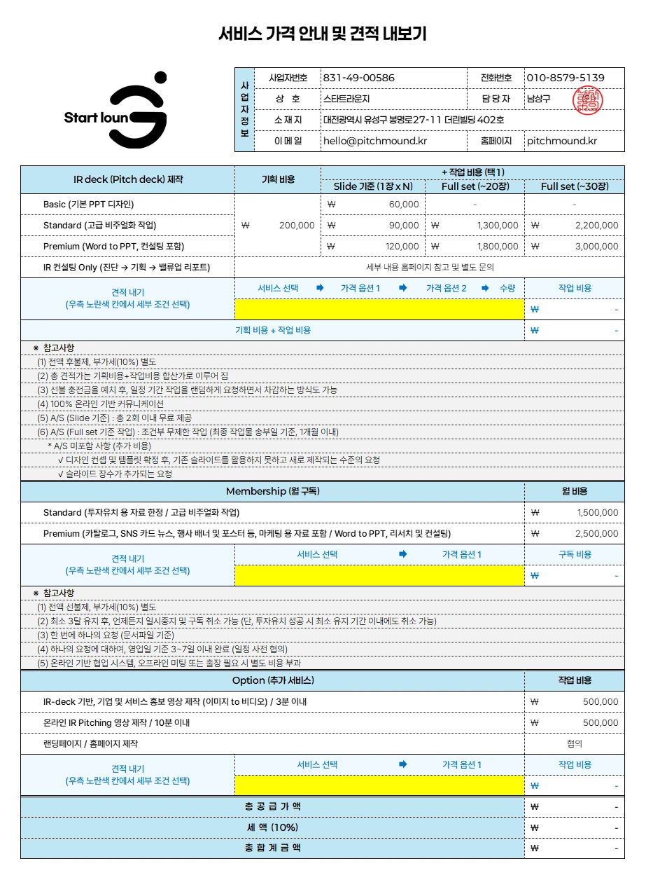 서비스가격 안내 및 견적내보기_피치마운드_2026.xlsx